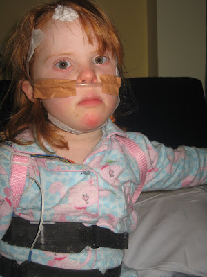 As part of giving Han the best opportunity to cope at school we had a sleep study done last week. I know she shows some of the signs - night sweatiness, snoring etc but have taken solace in the fact that most nights she sleeps pretty well. Well when we were at the study - she had the worst night I've ever seen. We haven't go the results yet. She was however very cute - and coped with all the paraphenalia they stuck on her - she still has the gummy residue on her - I am hoping that it will eventually come of if I bathe her often enough!